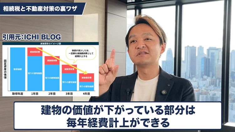 償却期間があるから、その間は毎年建物の価値が下がっていっている話になって