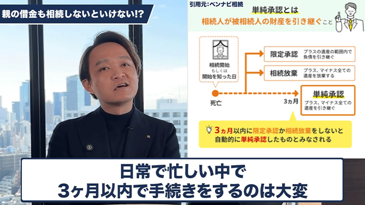 何も知らぬまま3ヶ月が経過して自動的に単純承認とみなされるのは相続人にとって酷な話です。
